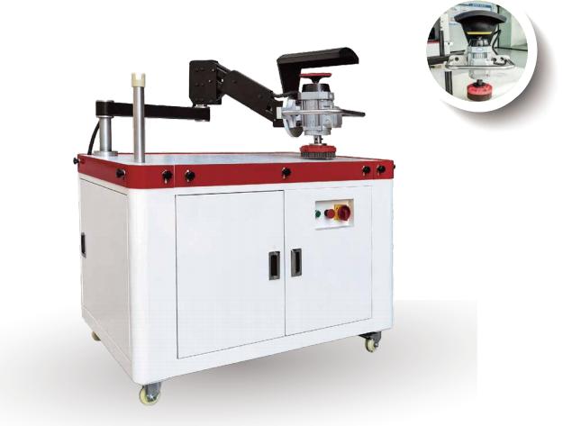 This machine is composed of a workbench and a mechanical polishing arm, suitable for surface polishing, slag removal, deburring and other treatments of small batches of metal plates. The machine is very convenient to use, and only needs to be pressed down lightly by manpower to achieve the grinding force of the machine. The self-controlled vacuum adsorption workbench automatically distributes vacuum suction. The workpiece is only placed flat on the workbench and can be ground without any clamping, which is efficient and safe. Different disc brushes can be selected according to the actual workpiece to achieve the ideal effect. The machine has a built-in dust suction function, which automatically sucks away the grinding chips generated when grinding the workpiece, protecting the health of workers and keeping the workshop clean. One power and two grinding heads are configured, and the grinding head can be quickly changed by rotating 180°, which is efficient, convenient, safe and energy-saving.