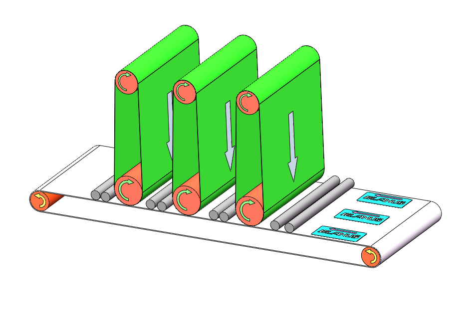 1. Conveyor belt+rubber roller clamp feeding (suitable for ordinary workpieces. Workpiece length>280mm)